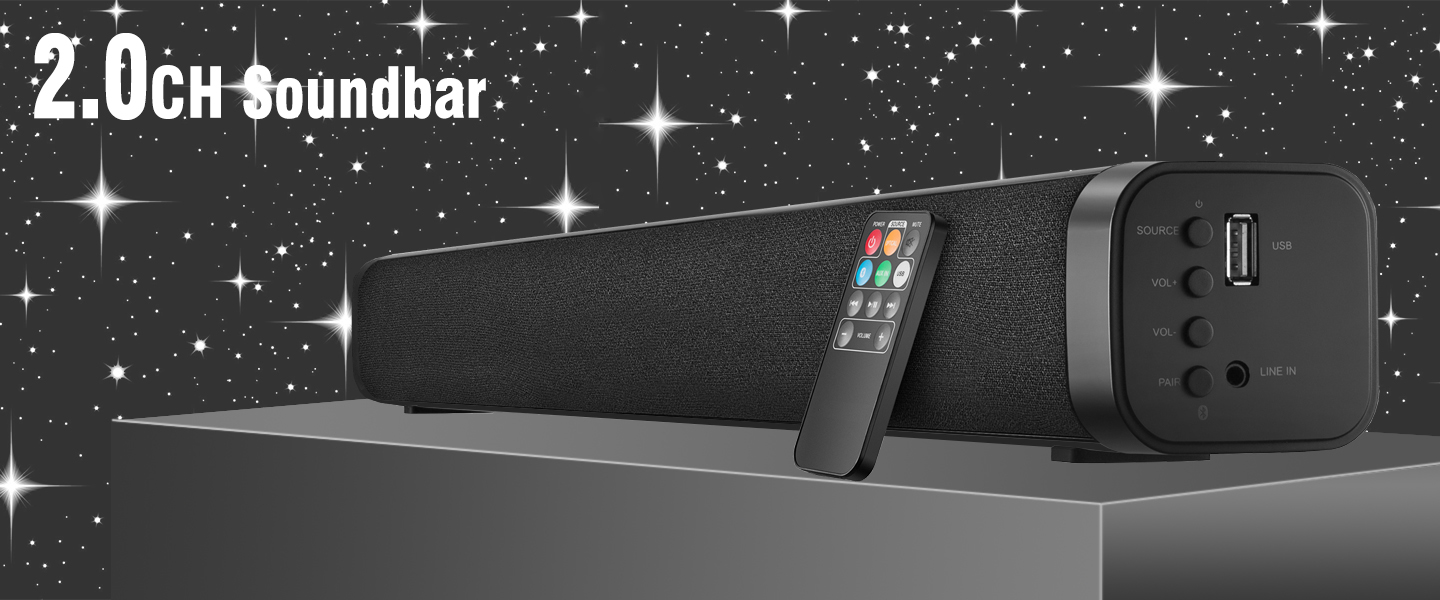 【5】 Audio Control in Your Hand SR221 Soundbar puts audio control right in your hand with its included remote control, allowing you to manage your listening experience effortlessly. With the remote, you can adjust volume, switch between input modes, and toggle sound settings from the comfort of your seat. This convenient feature enhances user experience, providing easy access to all essential functions without the need to get up or manually interact with the soundbar,whether you're watching a movie, listening to music, or catching up on the news. The remote control guarantees the consumer demand for soundbar basic performance. |