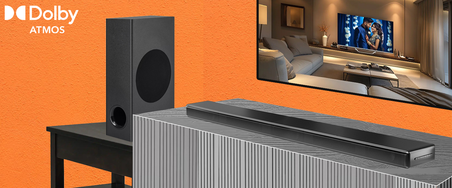 【1】 Dolby Atmos Cinematic Sound Enjoyment SRA283G-32 soundbar wireless subwoofer with Dolby Atmos technology elevates your listening experience to a whole new level. Immerse yourself in cinematic sound enjoyment, where every note and sound effect comes to life with incredible clarity and depth. Powered by Dolby Atmos, this soundbar system creates a truly 3D audio environment, making you feel like you're at the center of the soundstage. The impressive 6.5" wireless subwoofer delivers room-racking bass that fills every corner of your space, adding powerful low-end tones that resonate with intensity. Whether you're watching movies, gaming, or listening to music, the SRA283G-32 transforms ordinary moments into extraordinary audio experiences. |